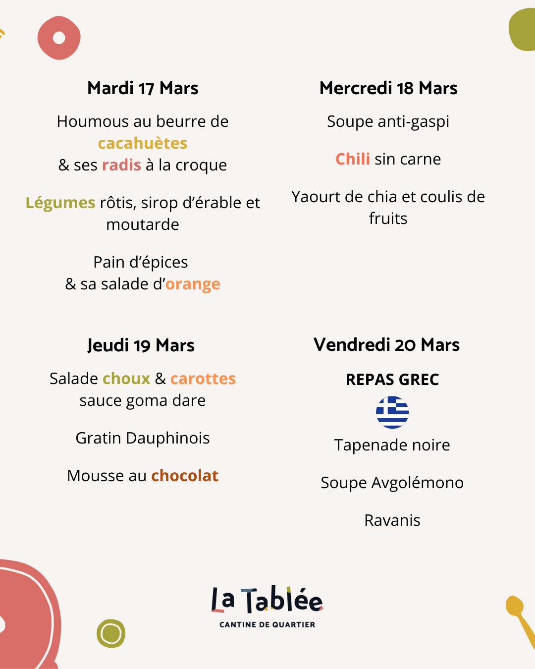 Menu du 17 au 20 Mars